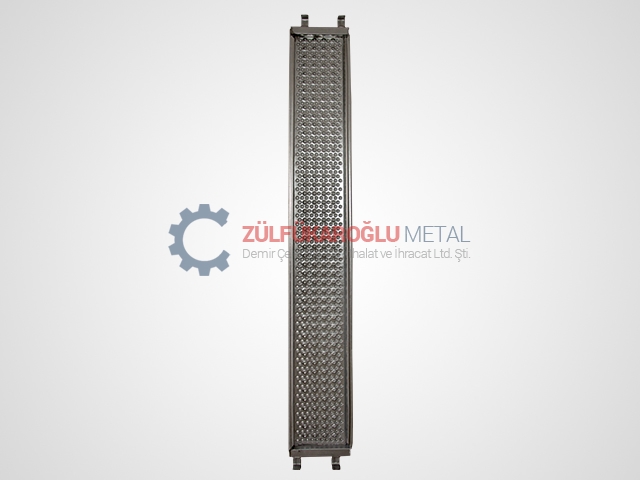 Güvenlikli iskelede kullanılan yürüme çelik platformudur.